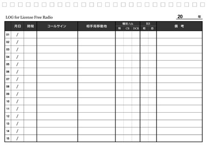 | CB、特定小電力、簡易デジタル無線に特化したログブックです。1 ページ15